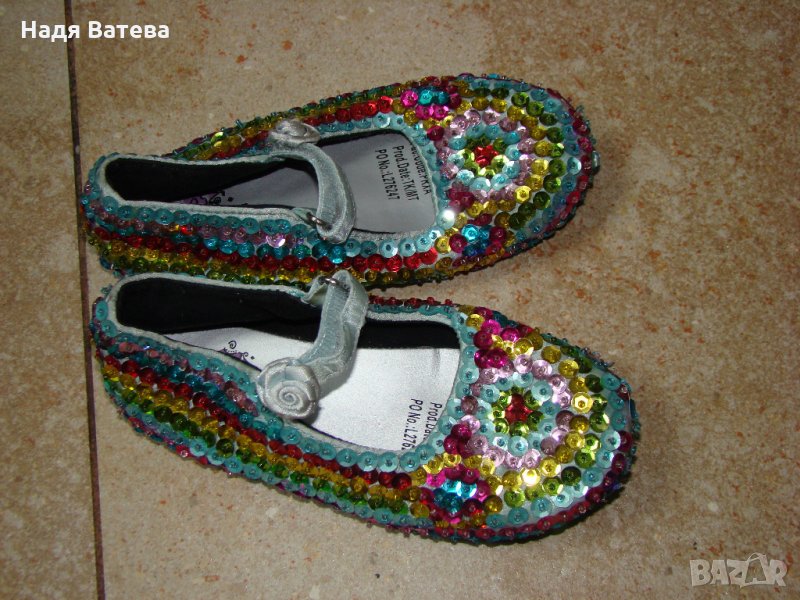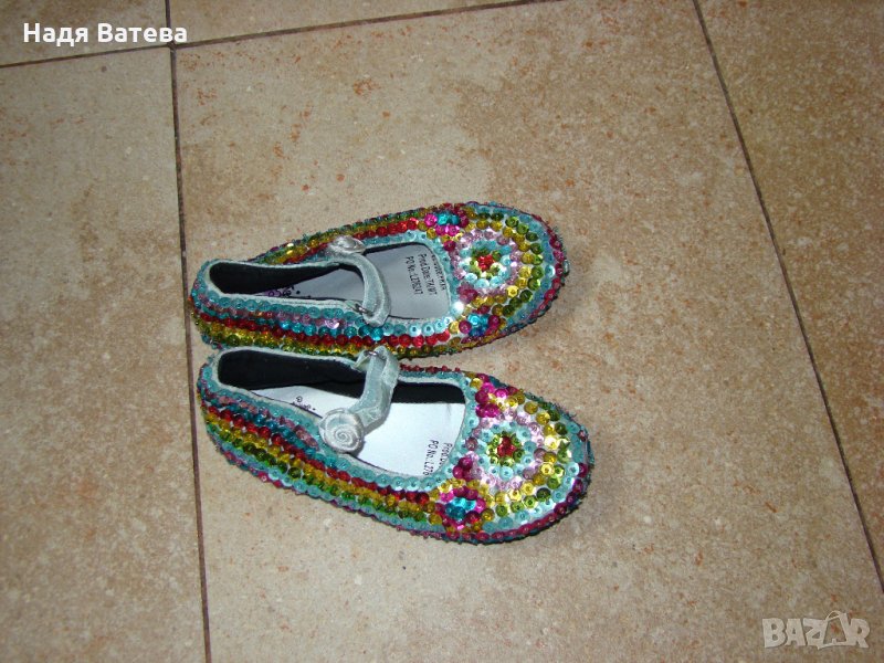 Страхотни пантофки за момиче опсипани с разноцвети паети. 17 см. е стелката.