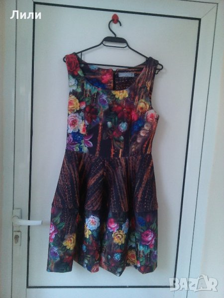 Рокля на цветя , с дължина над коляното , стой много елегантно