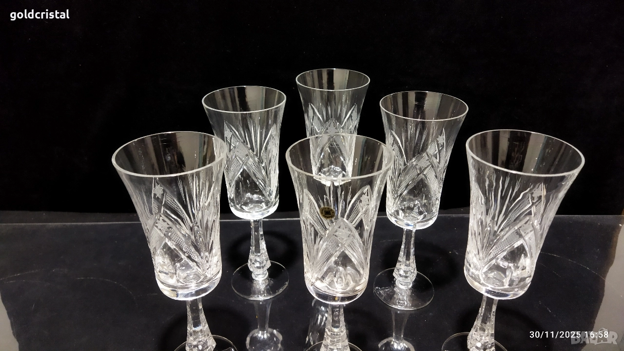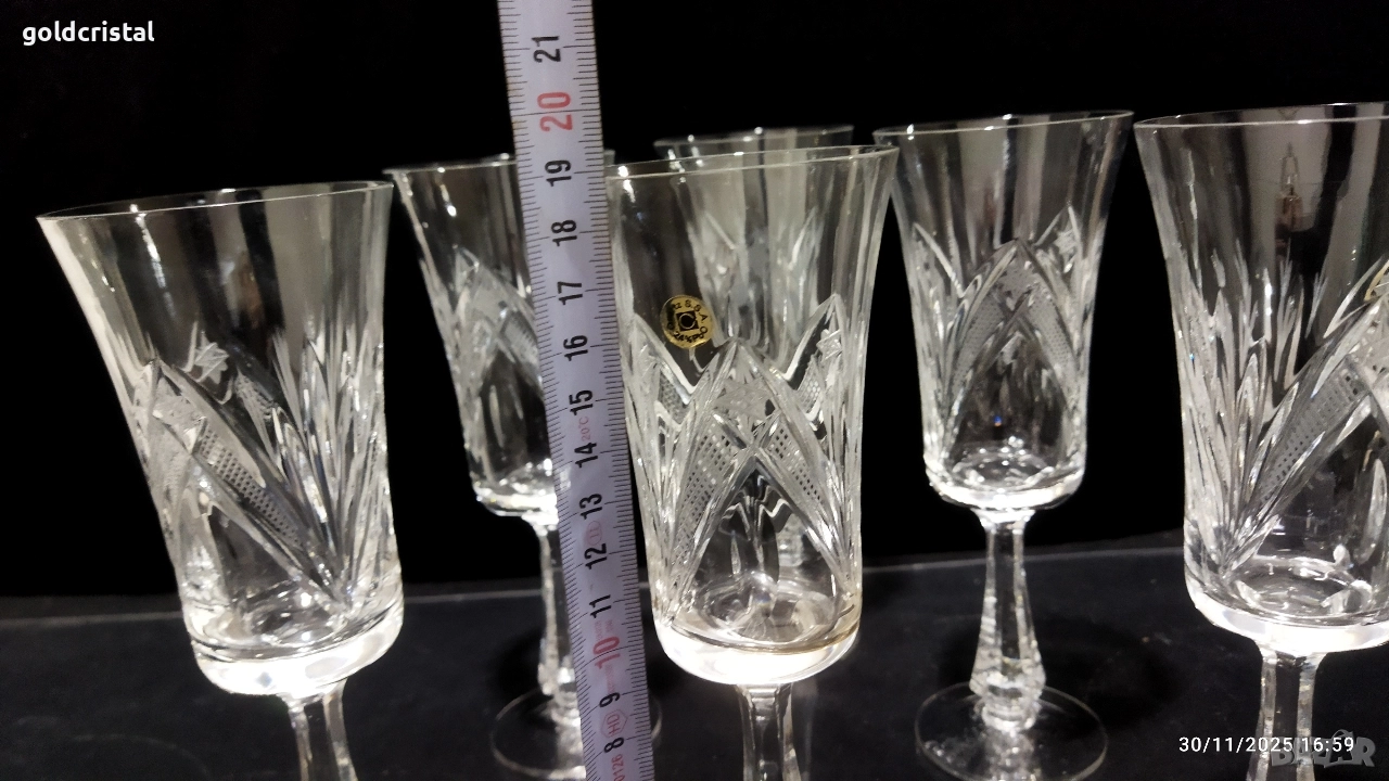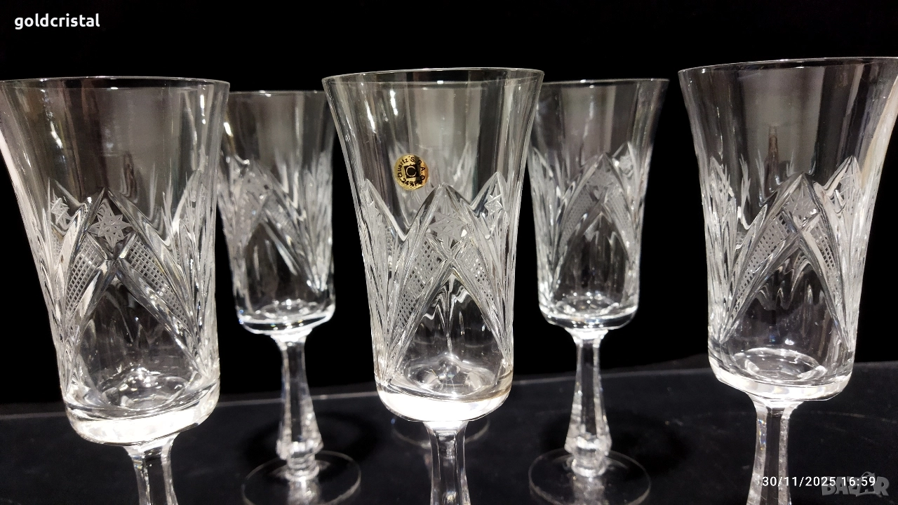 Български кристал ръчно гравирани сервиз комплект сет лот ретро арт декор винтидж колекция старинни антикварни предмети обзавеждане за дома и семейството подходящи за подарък за ценители и колекционери за вино шампанско гости тържество празник дома трапезария празници тържество посуда кухня готвене сервиране хранене гости
