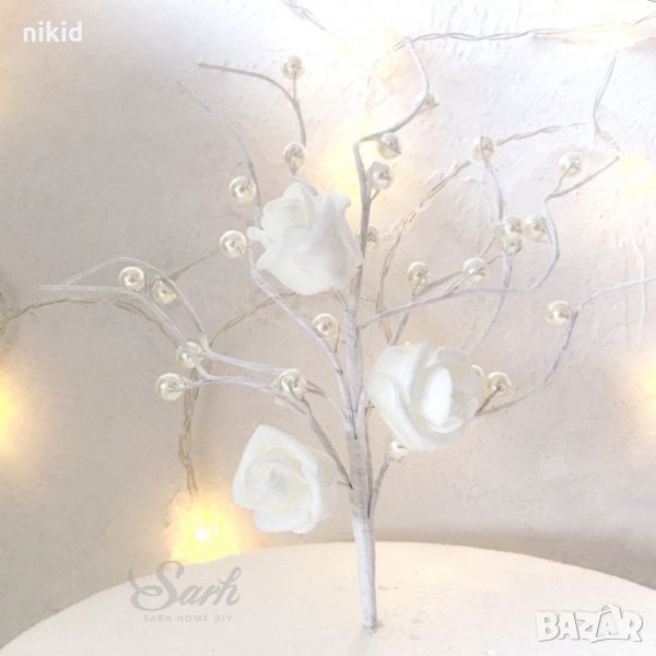 Бяло дръвче с перли и розички топер декор торта пита украса сватба кръщене → Обява 22308046