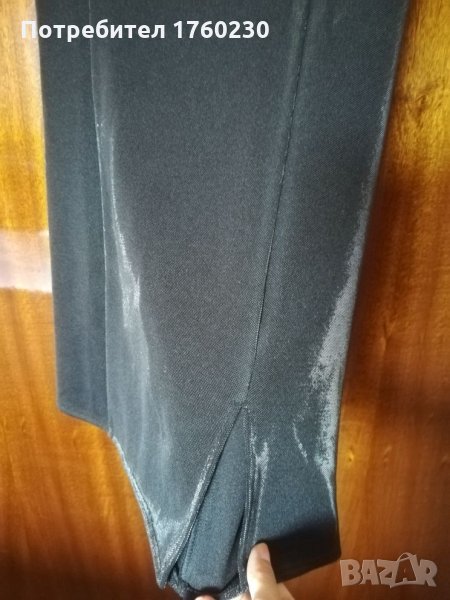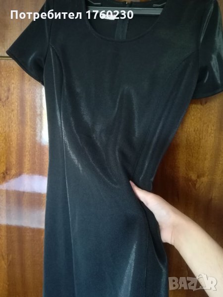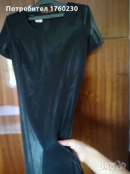 Продавам малка черна рокля с дискретна цепка отпред на крака. Роклята е подходяща и за повод, тъй като платът си мени цвета и на светлина материята е бляскава. Само е закупена без да е обличана.