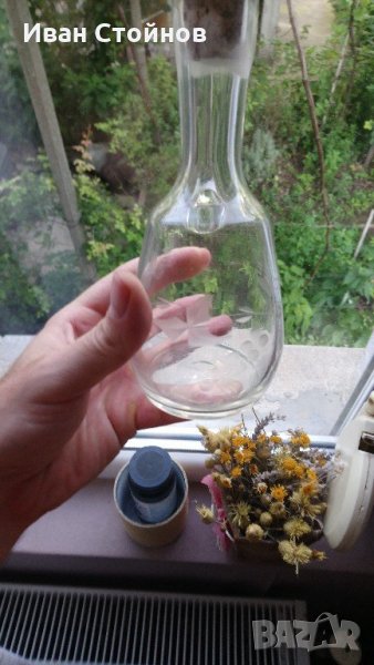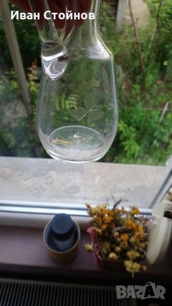 Стъклена каничка от средата на миналия век, ръчно гравирана.