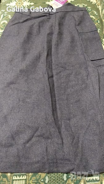 Тъмно синя, с джоб отстрани и копчета отзад, с дълж.- 67 см., талия - 70 см.;