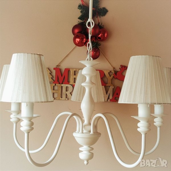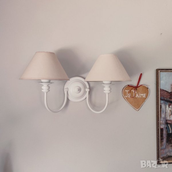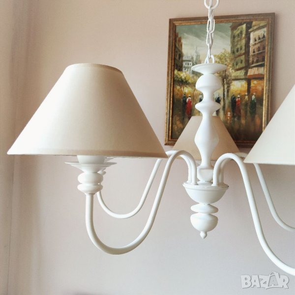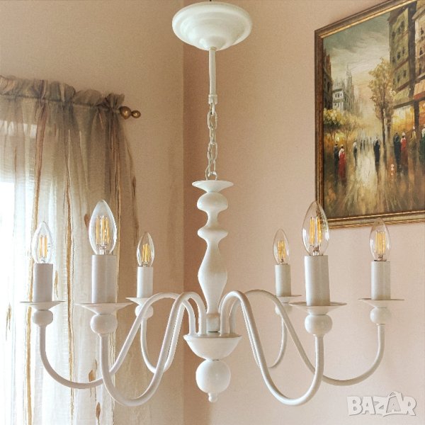 Допълнение към полилеите от моите обяви в стил шаби шик . Възможна комбинация и с настолни лампи в съшия стил . Цялостно обзавеждане със стилни и различни от всички останали осветителни тела. Предлагат се и аплици за стена, настолни лампи, единични висящи лампи(пендел) свещници в същия класически стил( шаби шик , ретро , винтидж )