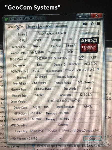 Radeon HD5450 (512MB DDR2,64-Bit,PCI-Ex 16x,Dual D-SUB,Low)