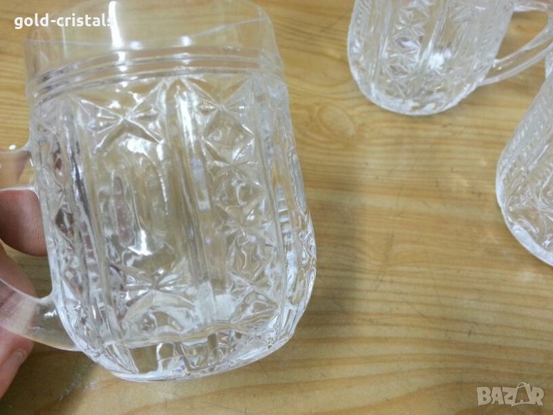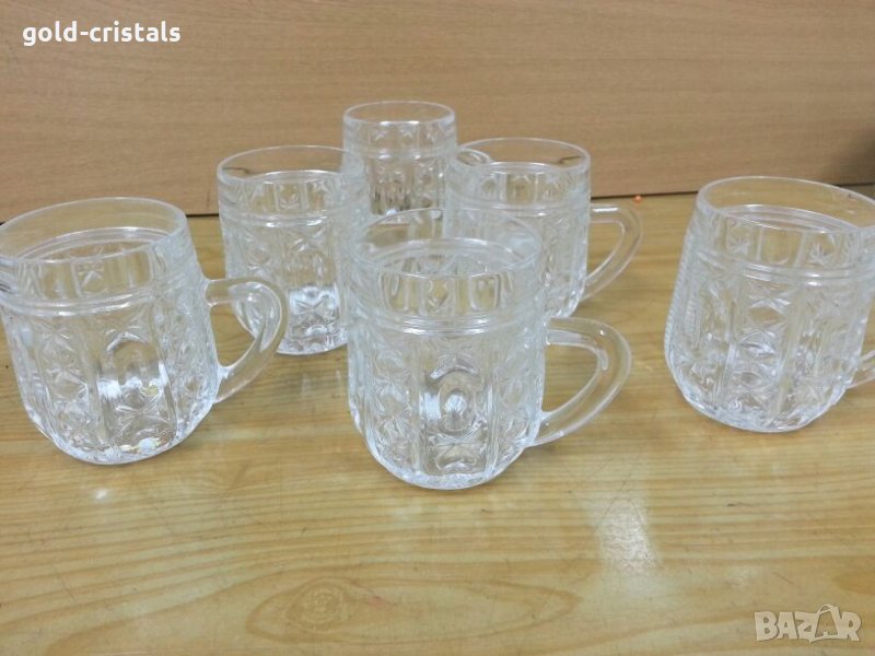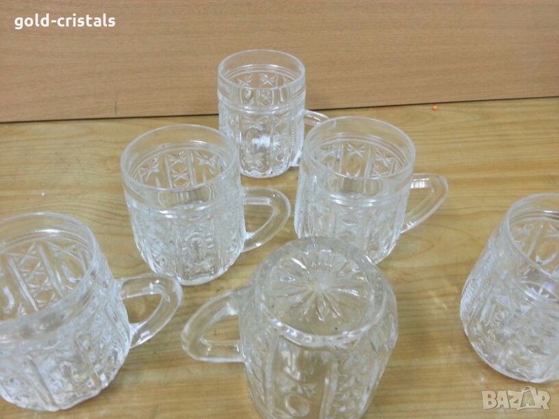 Стар руски кристал кристални чаши мини халби 6бр дебело тежко кристално стъкло сервиз комплект сет лот ретро арт декорация винтидж