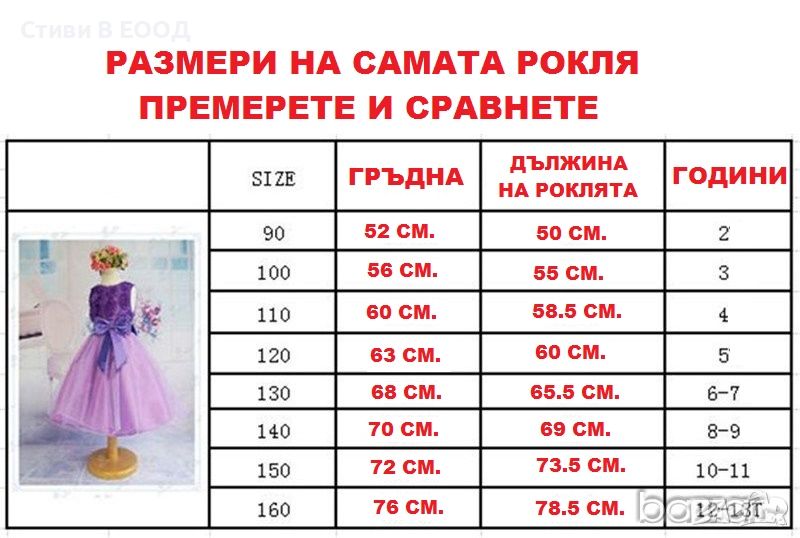 - височина на самата рокля 55 см.+- 1-3 см.