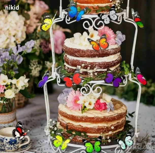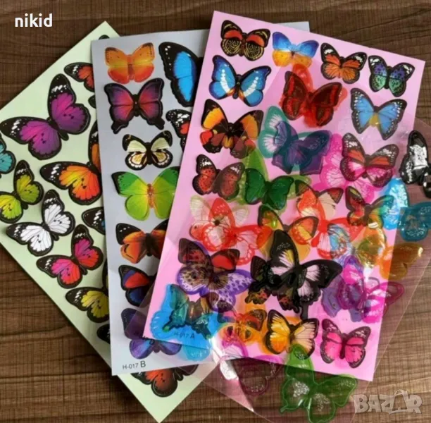 3D 12 бр pvc шарени самозалепващи пеперуди декорация за стена и мебел → Обява 22364440