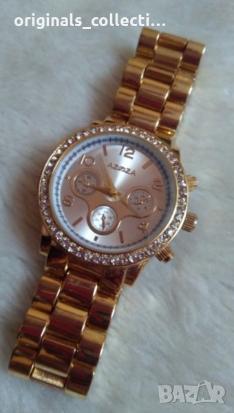 Оригинален, изключително елегантен и прецизно изработен дамски часовник на немската марка AZOZA. Часовникът е с инкрустирани камъни Swarowski. Подходящ за по-специални случай, придаващ завършен елегантен вид на визията. Както се вижда от снимките на вечерна светлина, часовникът изглежда невероятно.