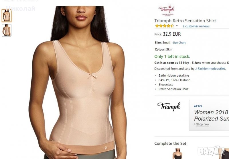 размери M- подмишница 29,5,най- тясната част в кръста е 27, в основата 32, от от рамото до основата 48, от деколтето до основата 31 и гръб 45см