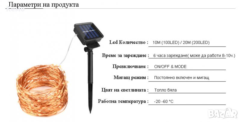 Тип: Соларна LED медна жична лампа