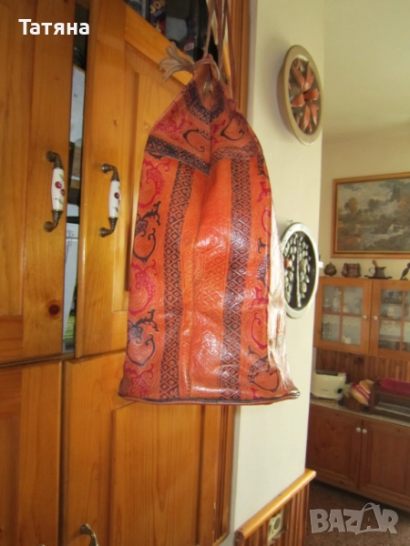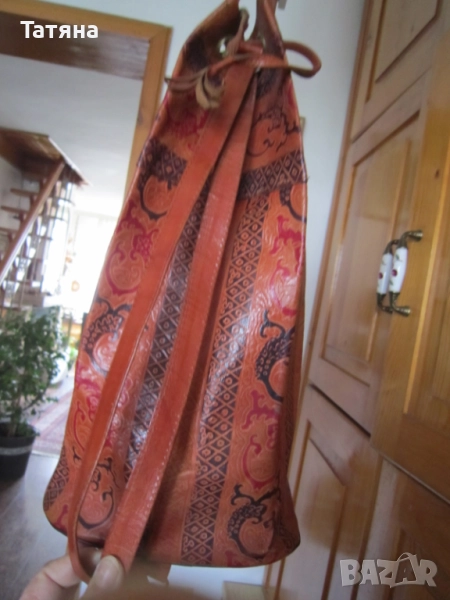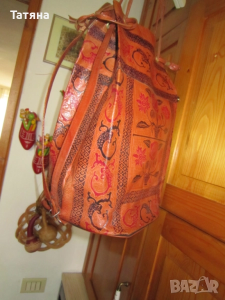 СНИМКИ 14-16 ; РАНИЦА -Индия; КОЖАТА е много здрава и с красива орнаментика- ръчно изработена;ЦЕНА -35 €