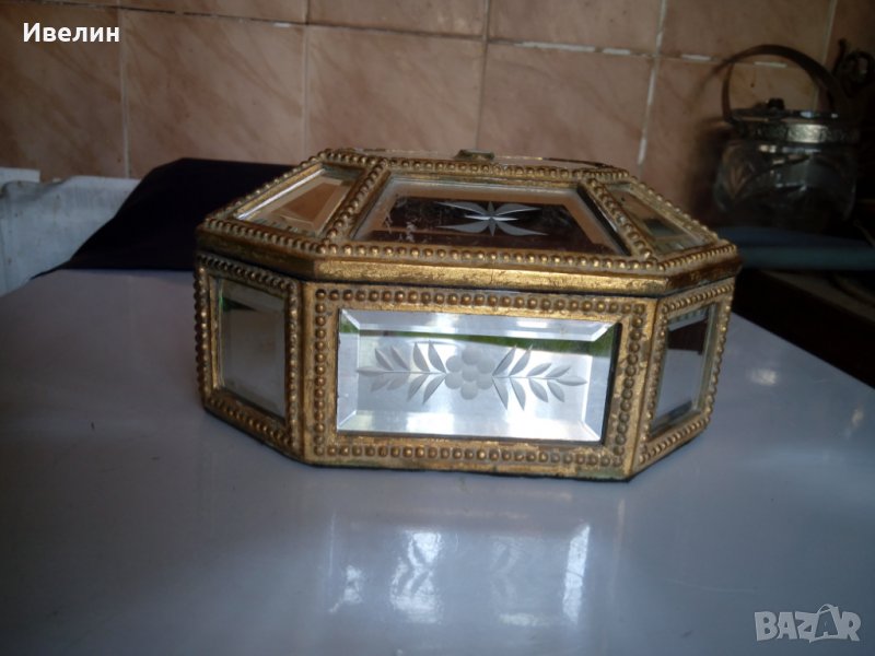 ретро кутия за бижута.корпус от полиризин с огледала с фаски.размери 9см/16см/12см.