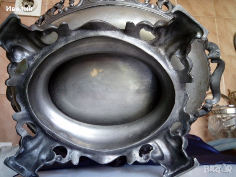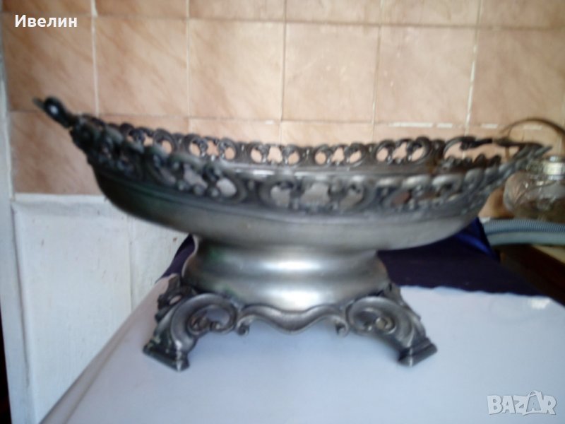 стара купа,фруктиера от цинково калаена смес.размери 14см/36см/27см.маркировка на дъното.