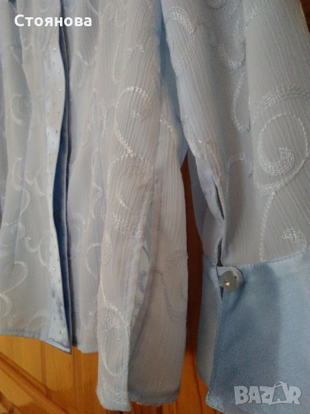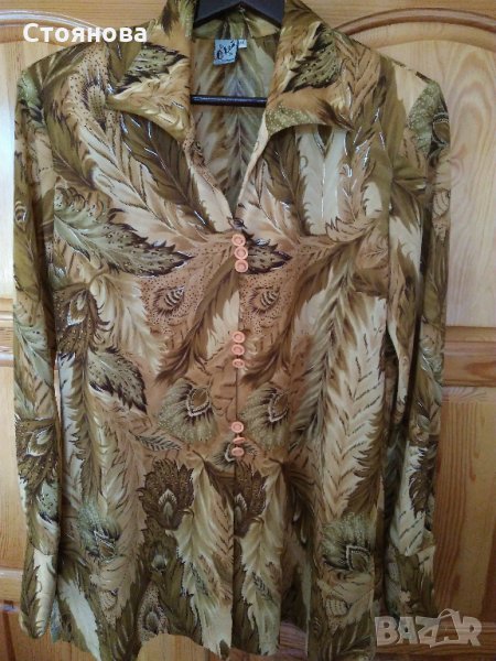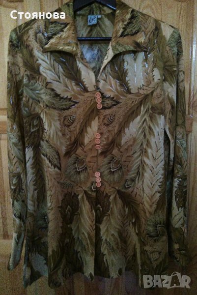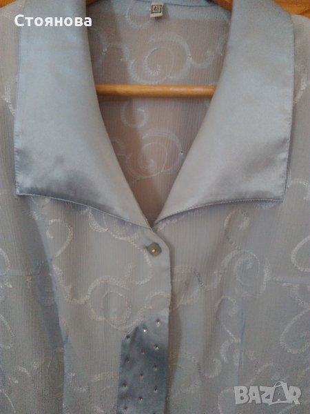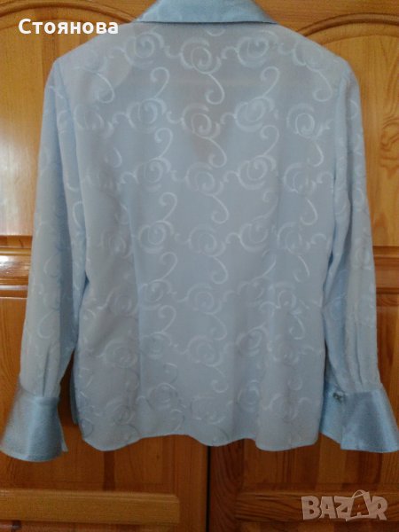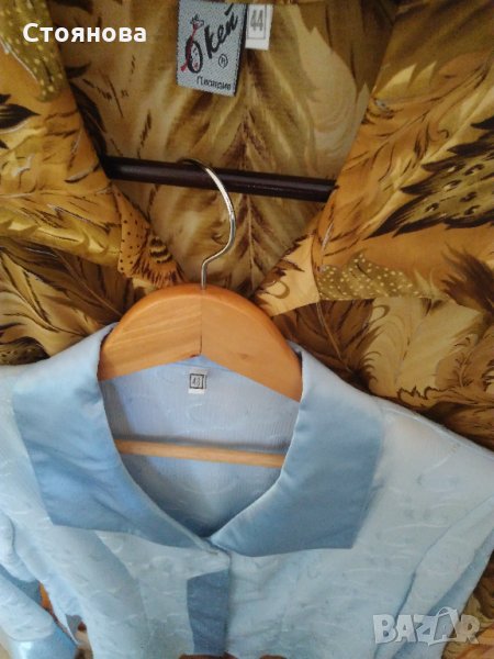 Продавам две елегантни блузи с дълъг ръкав българско производство: 1.Небесносиня блуза - по етикет размер 48 - не е носена - цена 15 лева и 2.Златистокафява блуза - по етикет размер 44, става и за 46 размер - обличана един път - цена 15 лева.