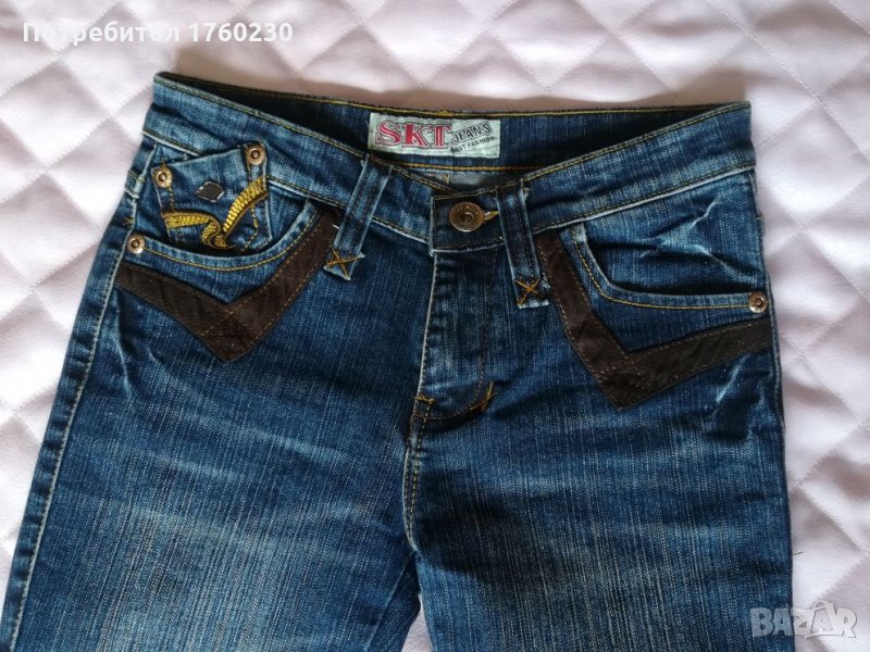 Продавам дамски дънки. Размер 26. С две джобчета отпред и две отзад. леко еластична материя. В отлично състояние.