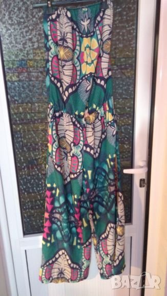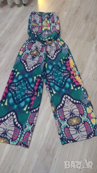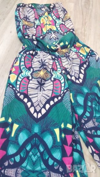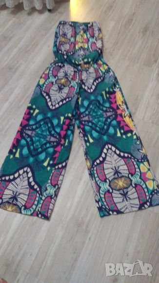 Страхотен гащеризон с широки крачоли, ластик в кръста, ластик на бюста,размер m/l ,гащеризона само е изпран не е носен. Материята е тънка и прохладна