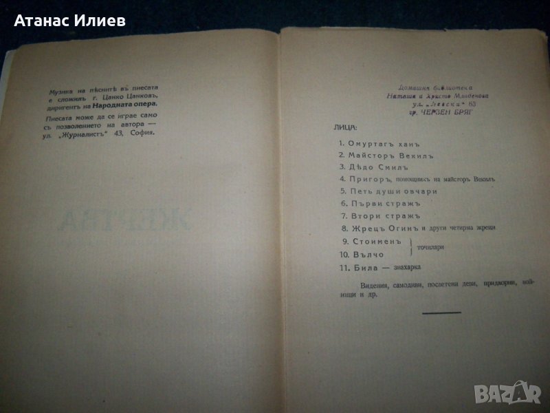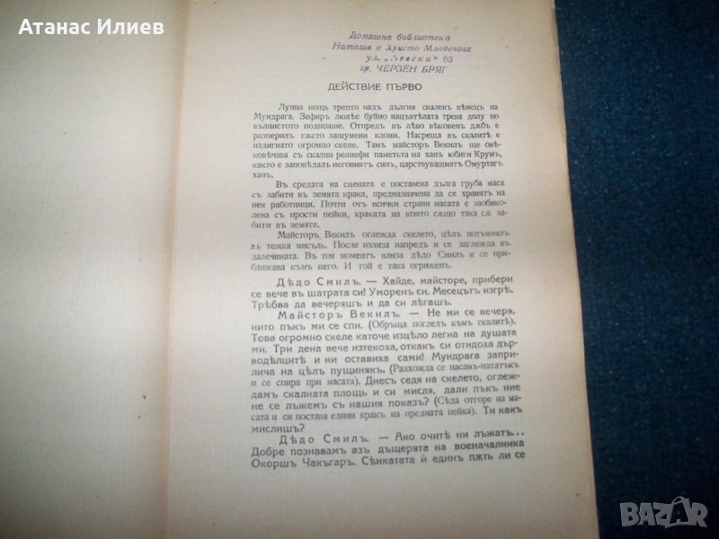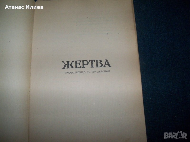 "Жертва" драма-легенда в три действия, автор Димитър Христодоров. Книгата е издадена през 1929г. вероятно от автора, не е посочено издателство. Книгата е с меки корици, 68 стр.