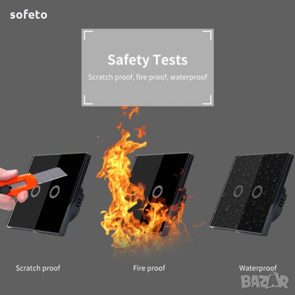 ЧЕРЕН !! Сензорен ключ за лампи с две вериги,лицевата част е водоустойчива изцяло от дебело стъкло! Свети синьо в тъмното при изкл положение и червено при включено. Луксозен много стилен работи само с докосване. Бял цвят 220волта 10А
