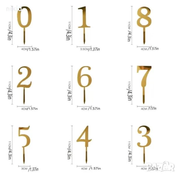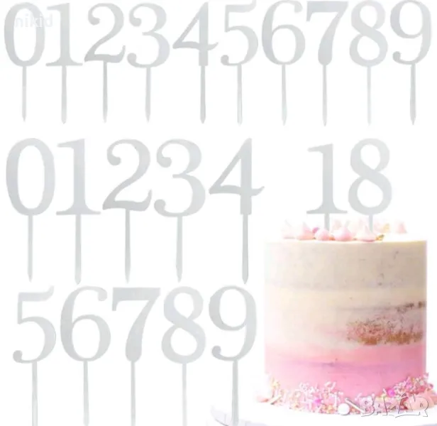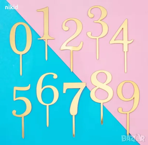 1бр МАЛКА 0-9 Златна сребриста цифра число твърд Акрил пластмаса топер торта мъфин украса рожден ден → Обява 22432032