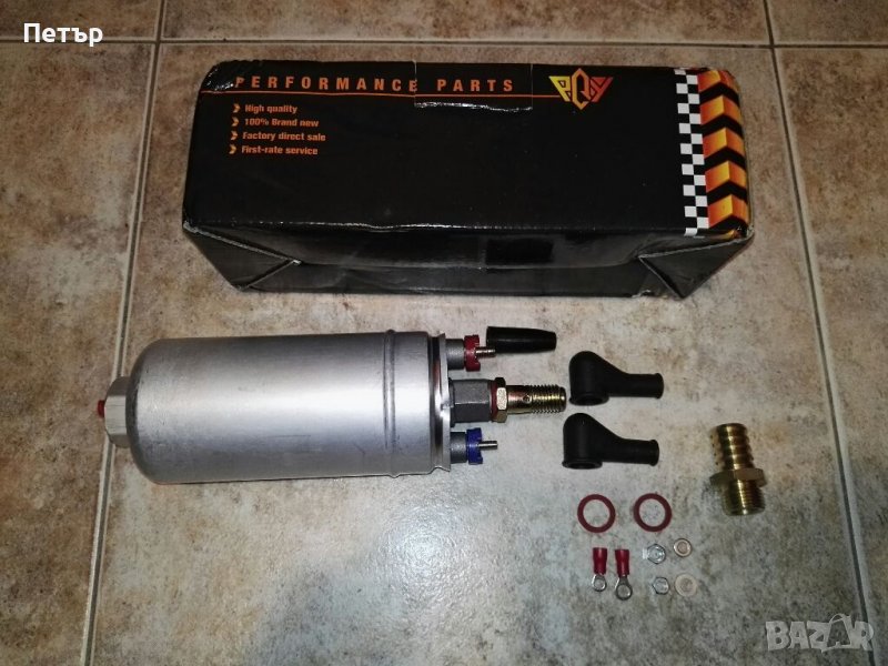 Продавам чисто нов външен алуминиев съд за помпа 044, catch tank резервоар с обем 2л и 4 изхода. Използва се като преходен съд между двете бeнз. помпи. Подходящ за тунинг проекти. Към съда има 3 броя фитинги 6AN, 6 броя болтчета с федерки, фланец за закрепване на помпата към съда.