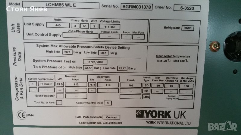 Чилър - York - вода-вода- 300 KW, снимка 1 - Други машини и части - 22442484 Чилър - York - вода-вода- 300 KW, снимка 2 - Други машини и части - 22442484 Чилър - York - вода-вода- 300 KW, снимка 3 - Други машини и части - 22442484 Чилър - York - вода-вода- 300 KW, снимка 4 - Други машини и части - 22442484 Чилър - York - вода-вода- 300 KW, снимка 5 - Други машини и части - 22442484 Чилър - York - вода-вода- 300 KW, снимка 6 - Други машини и части - 22442484 Чилър - York - вода-вода- 300 KW, снимка 7 - Други машини и части - 22442484 Чилър - York - вода-вода- 300 KW, снимка 8 - Други машини и части - 22442484 Чилър - York - вода-вода- 300 KW, снимка 9 - Други машини и части - 22442484 Чилър - York - вода-вода- 300 KW, снимка 10 - Други машини и части - 22442484 Чилър - York - вода-вода- 300 KW, снимка 11 - Други машини и части - 22442484 1/11