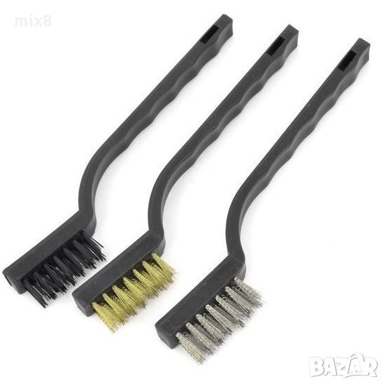 3 броя в комплект: телена, месинг и PVC четка в опаковка блистер.