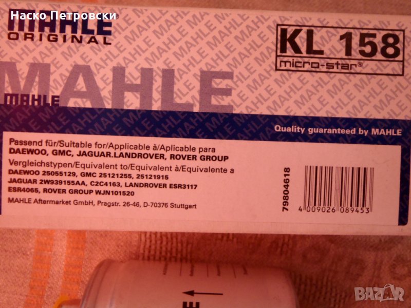 Продавам ЧИСТО НОВ горивен филтър Mahle KL 158 за бензинови двигатели.