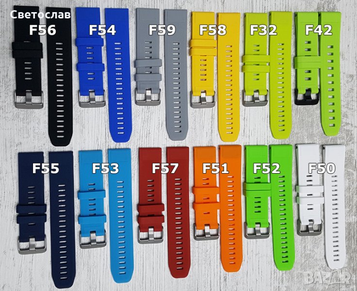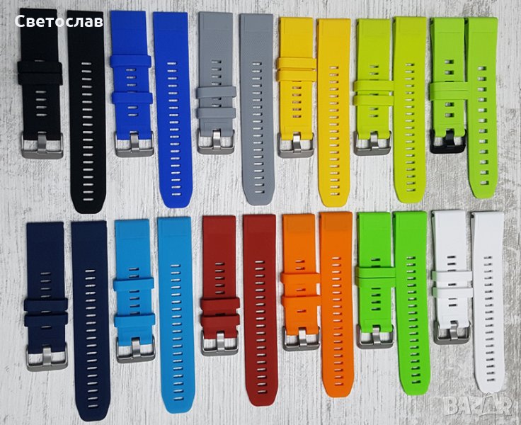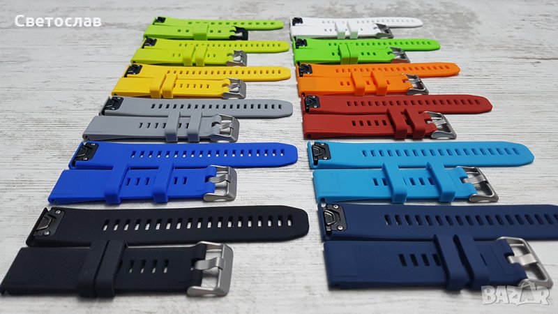 Нови силиконови каишки съвместими за Garmin Fenix 5, Fenix 5 plus, Garmin Forerunner 935, Quatix 5, Quatix 5 Sapphirе, Approach S60, както и за най-новия модел на Garmin 6/6 +. Различни цветове, QuickFit /бърз монтаж/ 22mm. Мек, издръжлив и противоалергичен силикон.