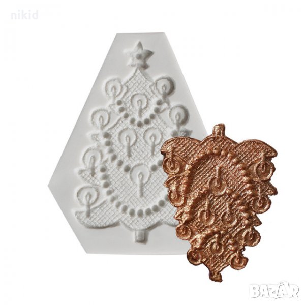 Коледна елха с гирлянди и свещи силиконов молд форма за декорация и украса торта фондан → Обява 22519502