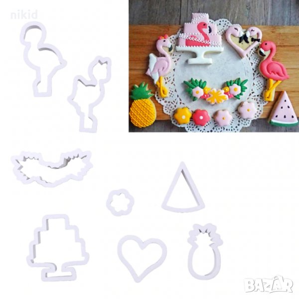 Фламинго Хаваи сет 8 пластмасови резци форми украса торта сладки бисквитки → Обява 22520386
