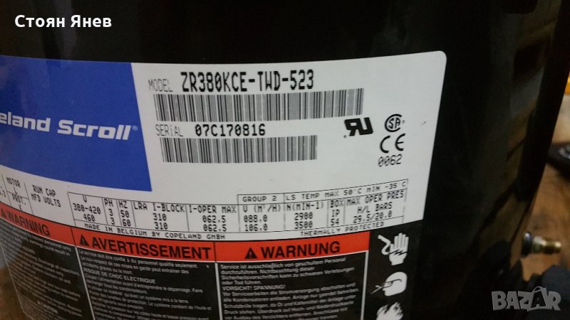 Хладилен компресор Copeland - ZR380KCE-TWD-523 → Обява 22549487