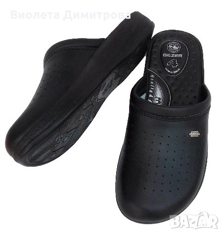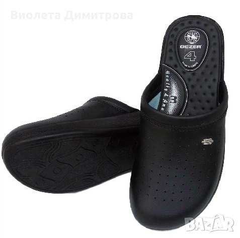 #Анатомични #мъжки #чехли на турската марка GEZER, изработени от мека еко кожа, на малки дупчици за добра вентилация, с метална емблема на марката отстрани и подметка дебела 3,5см.