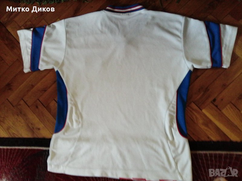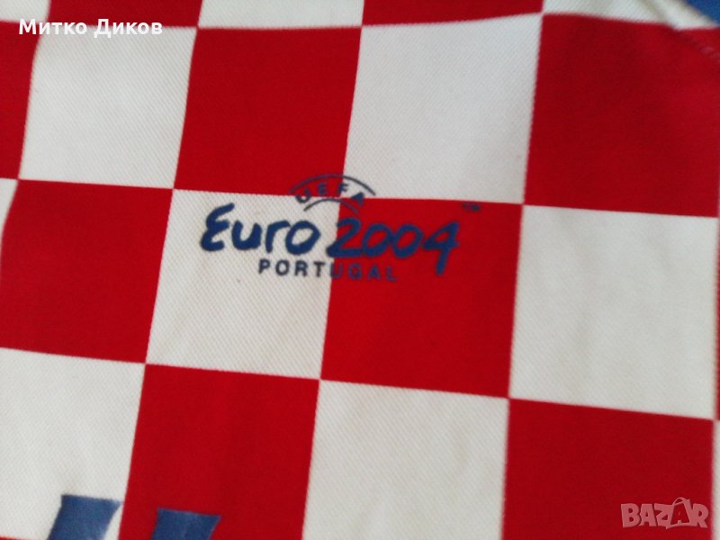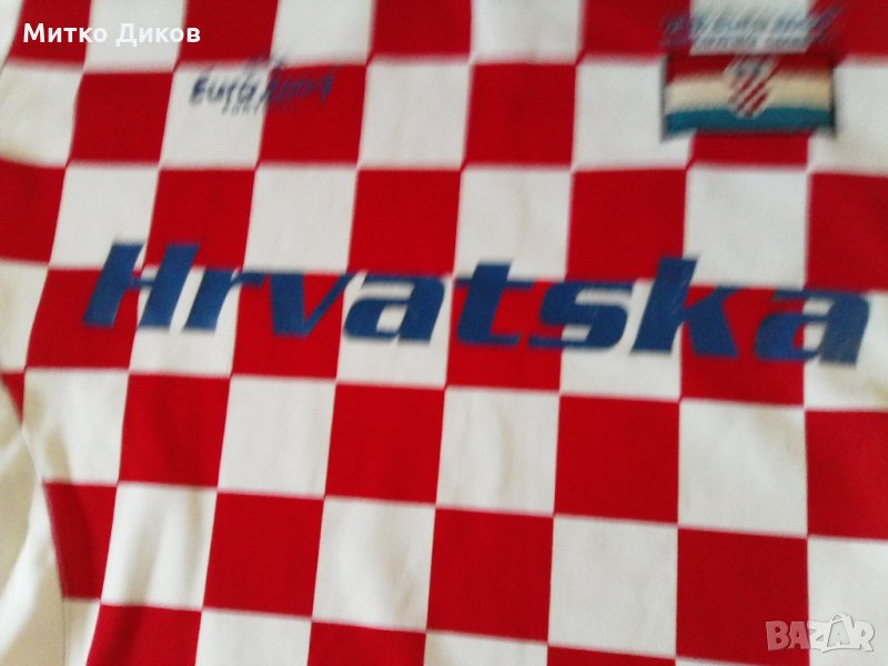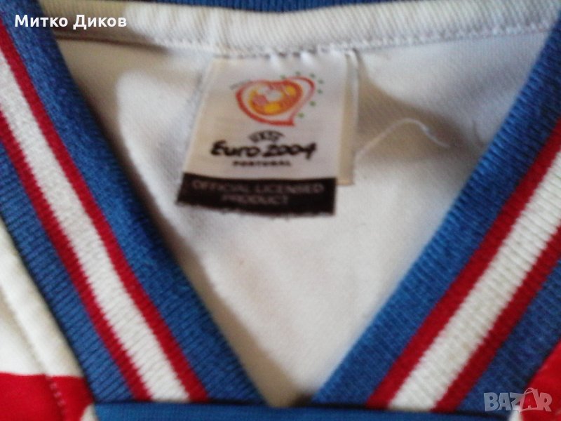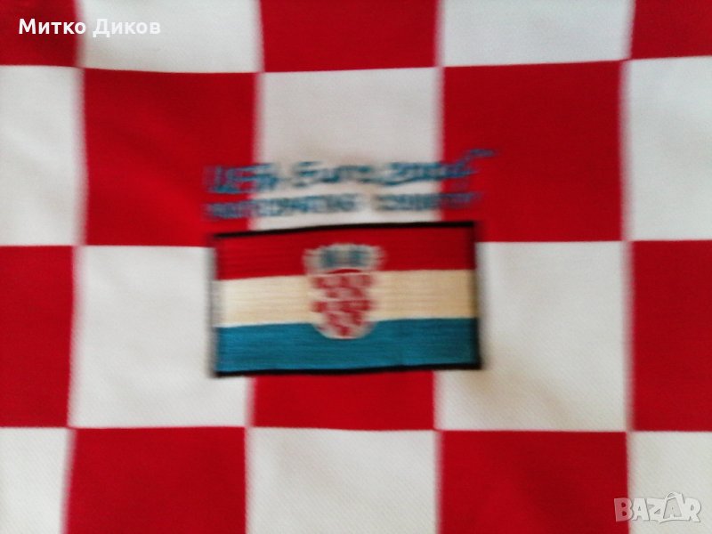Тениската е на Хърватска от евро 2004 по футбол-размер по етикет М-реално е Л-отгоре додолу 73см и подмишници-57см-добро състояние -има няколко жълти малки точици които са почти незабележими и при по-качествено пране може и да паднат-затова цената е ниска-изпращам по еконт с отстъпка