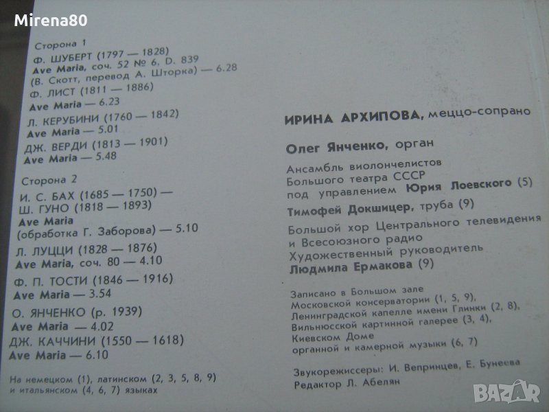 - Аве Мария - ДВОЙНА - Ирина Архипова + Олег Янченко (орган)- в изпълнение на Ансамбъла на виолончелистите на Большой театр - СССР