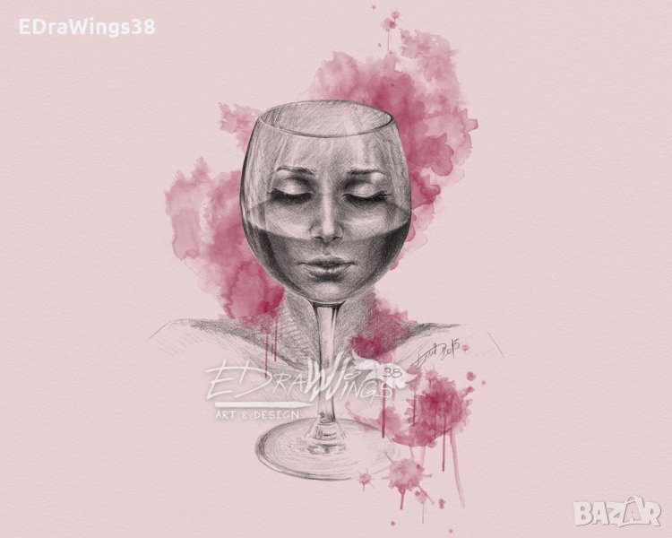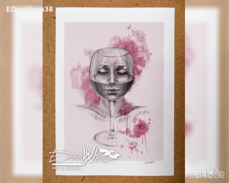 рисунка, илюстрация, графика, изкуство, сюрреализъм, акварел, жена, вино, чаша, елегантно, арт принт, принт картина