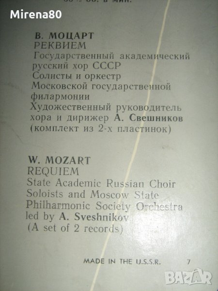 - Моцарт - Реквием - 2 малки плочи - Made in USSR - продадена !