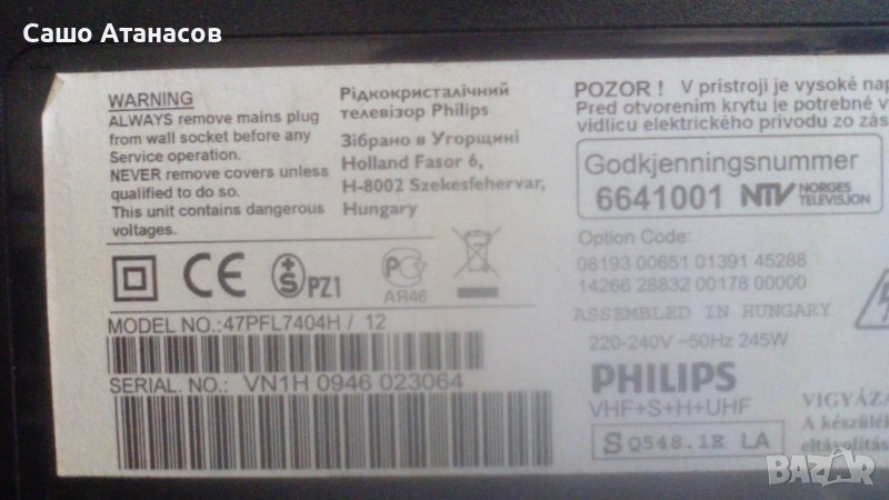 PHILIPS 47PFL7404H/12 със счупена матрица , LC320/420/470/550WU_120Hz CONTROL ,LC470WUF (SB)(N1)
