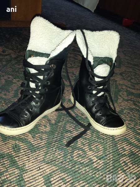 4ерни кожени ботуши,много хубави и удобни,отвътре с вълна.могат да се носят по два на4ина,имат и връзки за лесно обуване.напълно здрави са,цената за тях е 10лв,сивите пак са много запазени,много топли с вълна отвътре и от вън,те са 5лв,общо за 13лв