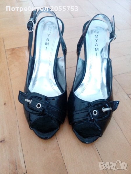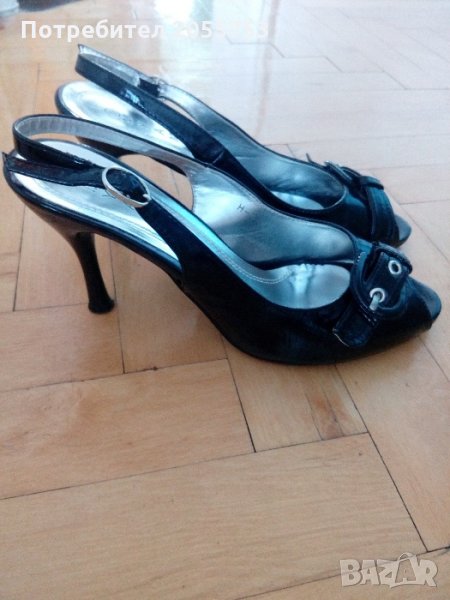 Продавам дамски лачени черни сандали,много запазени,носени само веднъж. Височина на тока 9 см.,номера е 39,но отговарят на 38.