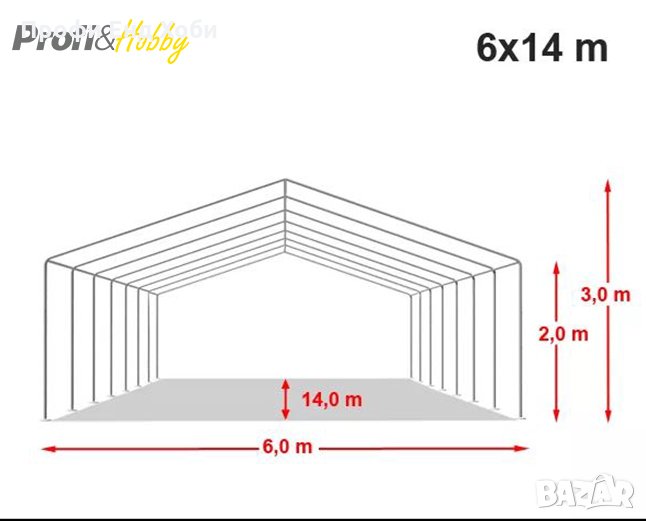 Професионална шатра 6x14м, PVC 500г/м2 - бяла
