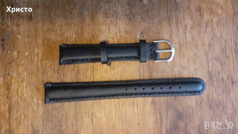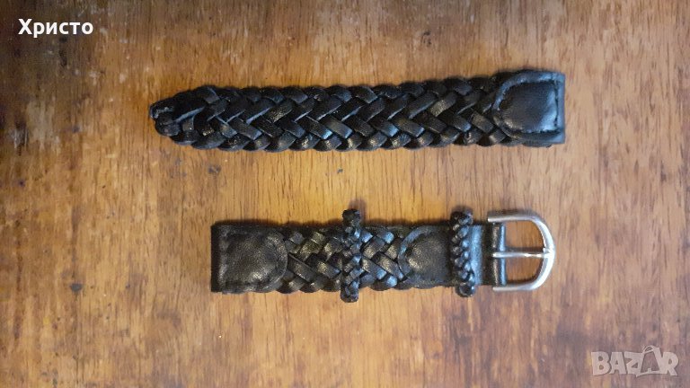 Снимка 7 - плетена кожа, ширина на каишката при патента 1,7 см, дължина на частта без закопчалката 11 см, дължина на частта заедно със закопчалката 9 см. Мат черно, няма фиксирани дупки, със сребърна закопчалка - имам 1 брой., цена 5 евро