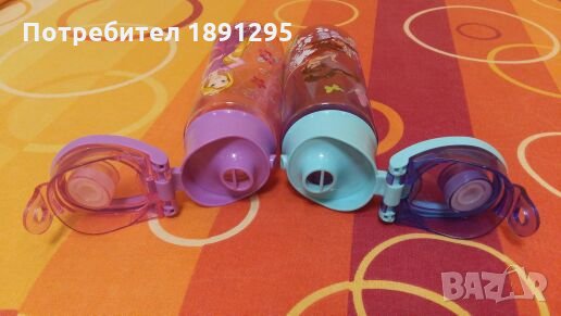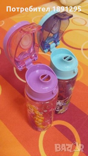 Пластмасови шишенцата на "Disney"- с картинки, оригинални, закупени от Рим ! С мундщучета, когато се пие да не се разлива ! Цвят:розово и лилаво ! Наливно е само вода и то няколко пъти, защото преминахме от бибероните направо на чаша !Цената е за двете шишенцата и е твърда ! ( без коментар ) Пращам по Еконт за ваша сметка с наложен платеж !
