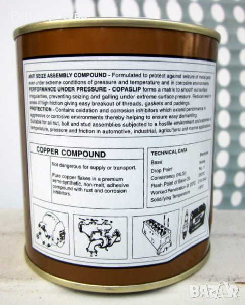 Copaslip е с висока температурна паста, анти-изземват монтаж съединение, което дава дълготрайна защита от корозия, окисление и изземване на метални части.