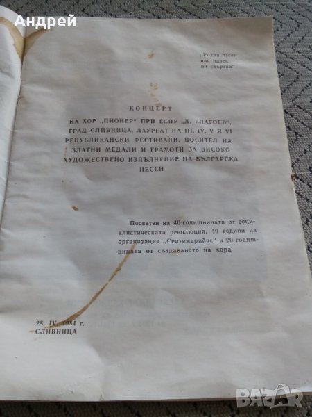 Стара брошура 20 години ХОР ПИОНЕР → Обява 22647377