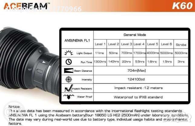Нов Професионален прожектор, фенер ACEBeam K60 Cree XHP70 LED