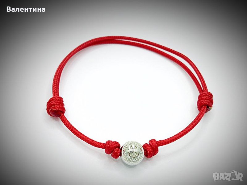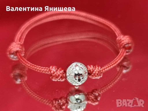 червен конец / корда и 925 сребърен елемент със лого и родиево покритие –размер на мънистото- 6мм ( предлага се и в 8мм) Подходяща за подарък за мъж !