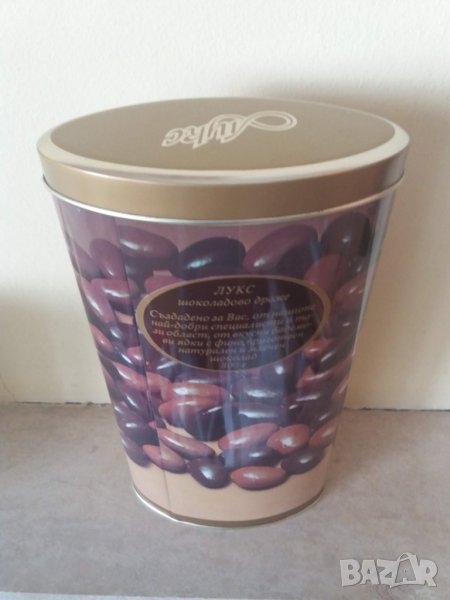 Стара ретро луксозна метална кутия от бонбони отощ периодакрая на 70те началото на 80те години соц периода.Кутията е с овална форма висока е 23.5см широчина 12.3см,Много добро състояние има драскотини само от отварянето и затварянето на капака.