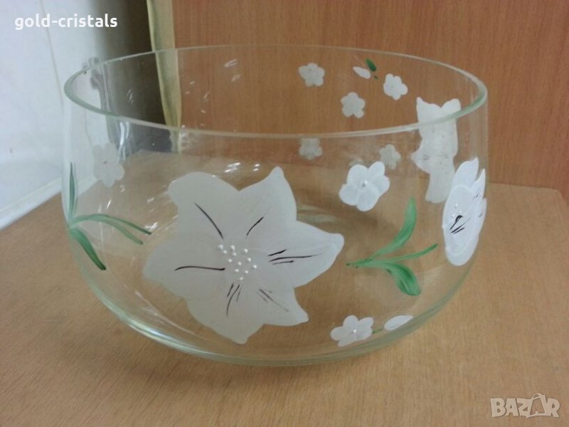 Ръчно рисувана купа фруктиера 15/10-19лв кристално стъкло арт декор винтидж колекция ретро стара ръчна изработка има три размера 12/10-15лв