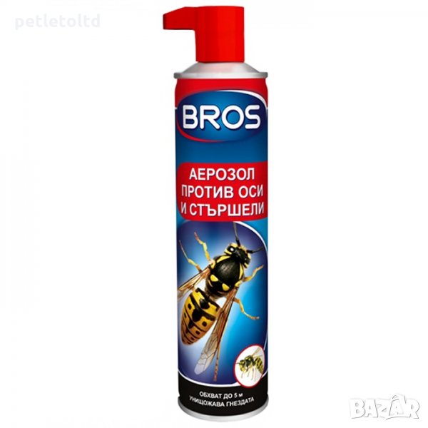 Препаратът BROS спрей е предназначен за унищожаване на гнезда на оси и стършели.